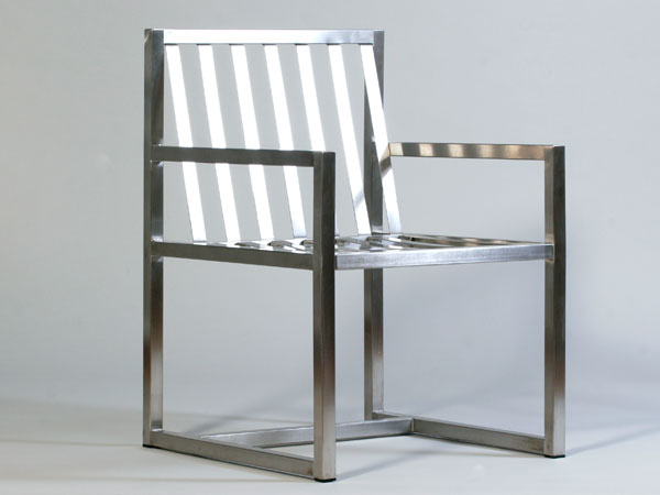 Die Verstrebungen am Grund verleihen dem Sessel nicht nur ein geschlossenes Aussehen, sondern gewährleisten auch, dass er auf einem unsicheren Grund wie Wiese einen sicheren Stand behält.