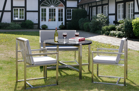 Das Tischuntergestell passt hervorragend zu unseren Sitzmöbeln. Ihr örtlicher Steinmetz sorgt für die Tischplatte aus dem von Ihnen gewählten Material. Auf Wunsch übernehmen wir das gerne für Sie.